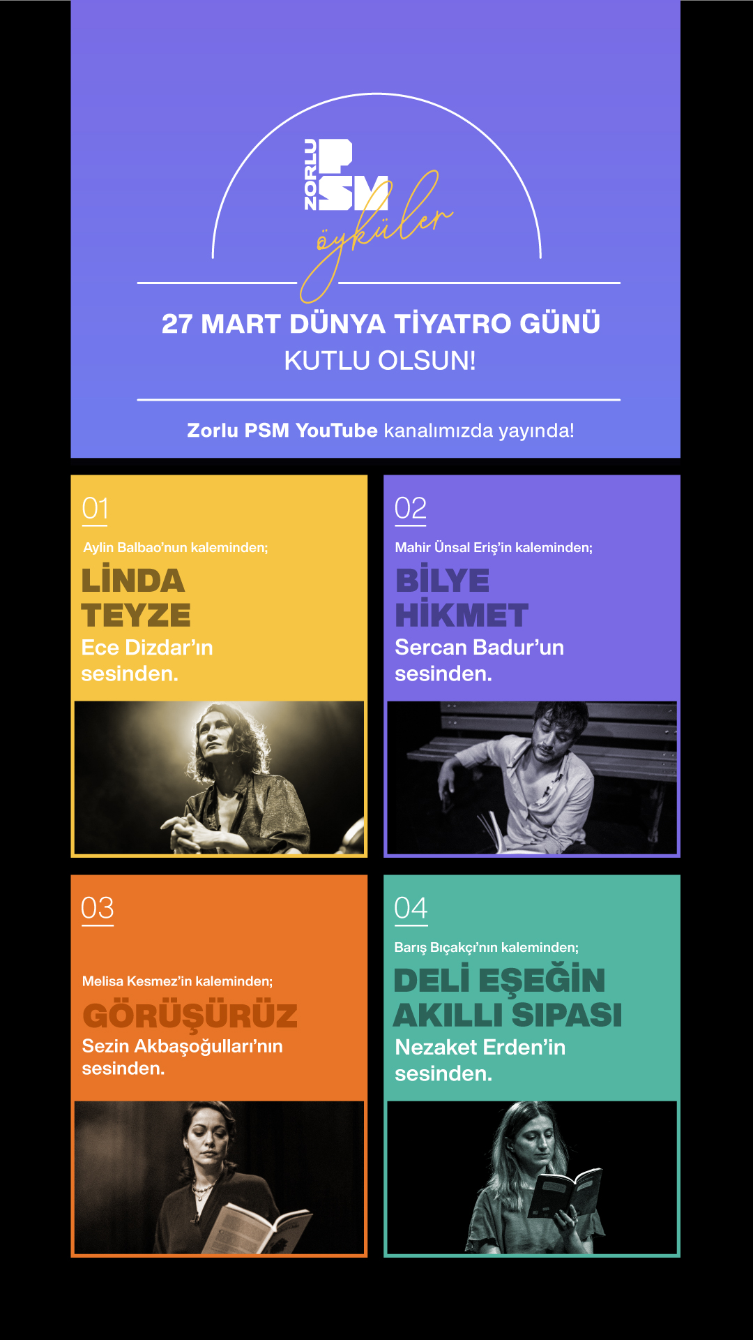 Zorlu PSM Dünya Tiyatro Günü’ne özel edebiyat alanındaki ilk projesi “Öyküler” ile yayında!